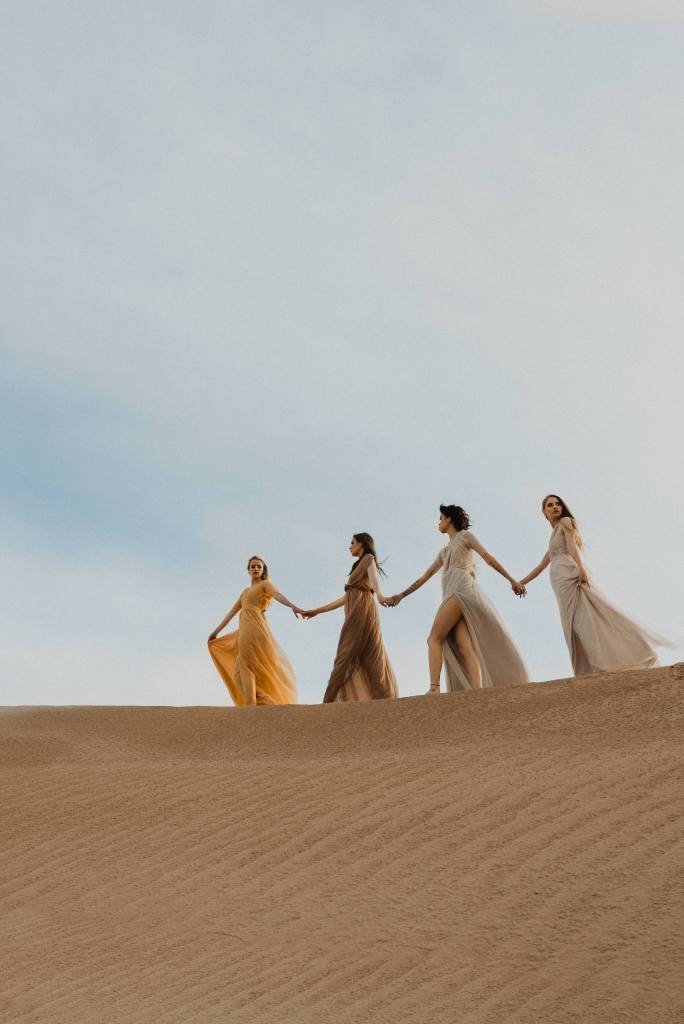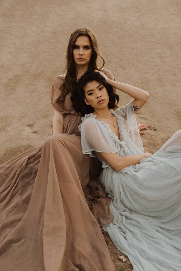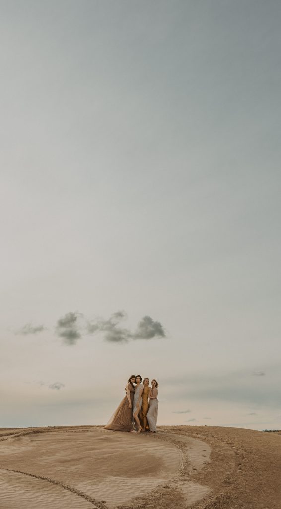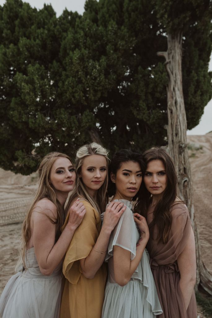 For this gorgeous photo shoot we drove out to Little Sahara, and this was my first time there! I loved the clean, simple lines that made these girls just POP. They were all so sweet and we worked with so many amazing vendors. Onyx and Ash did the jewelry, the dresses were from Adorned rentals, and hair and makeup was by Jade Make Up Artist.