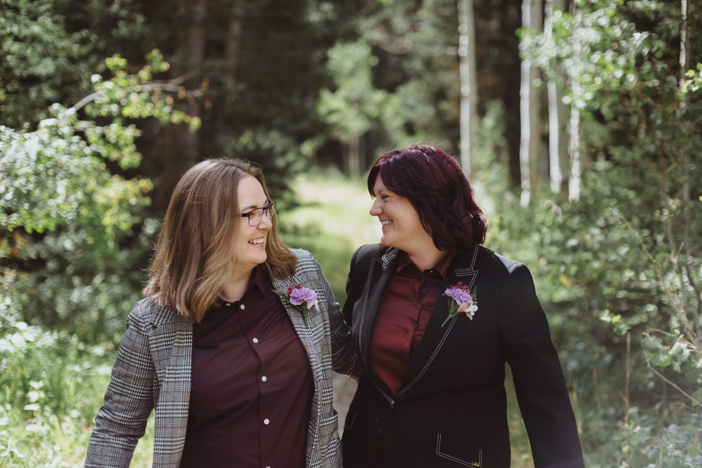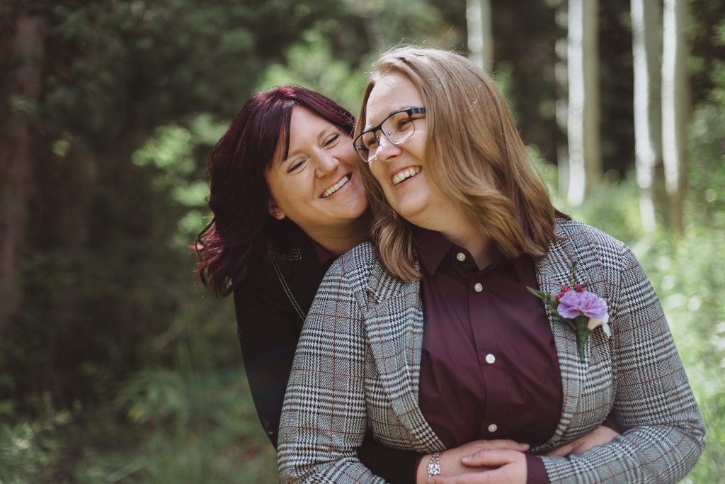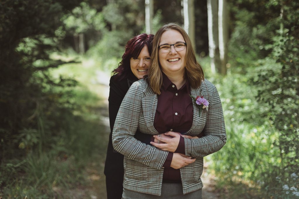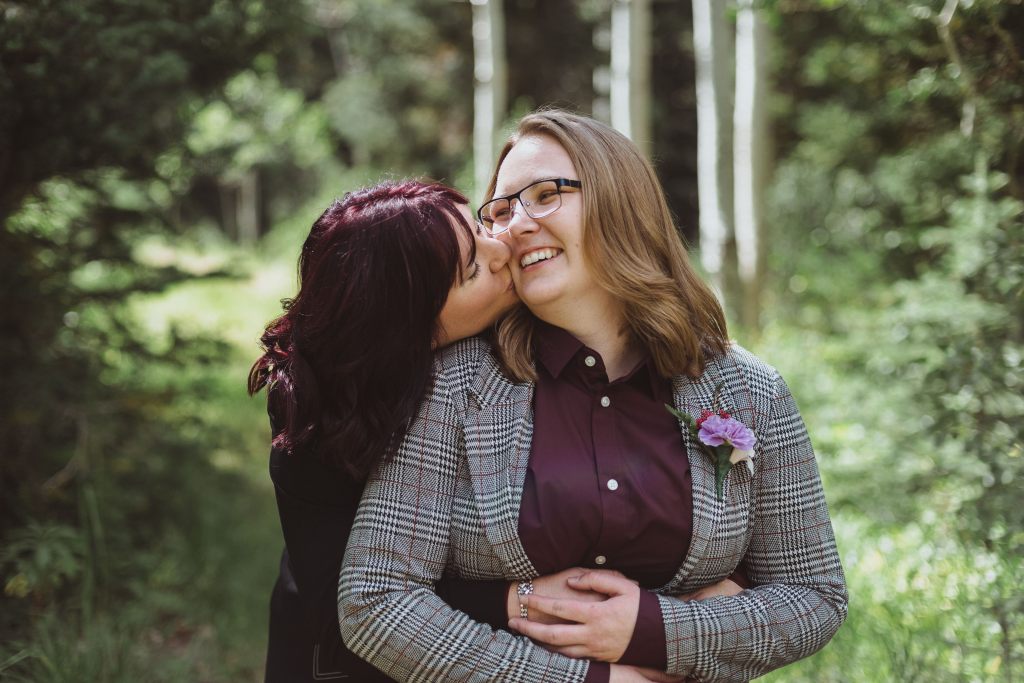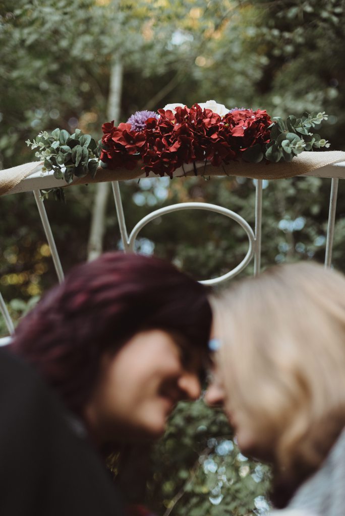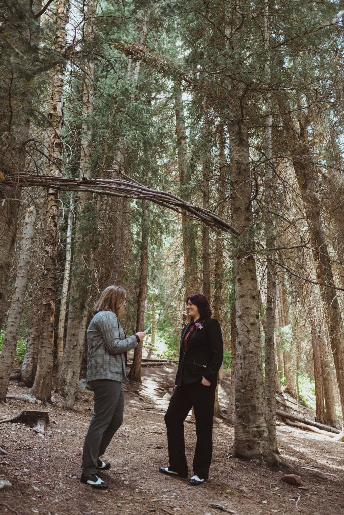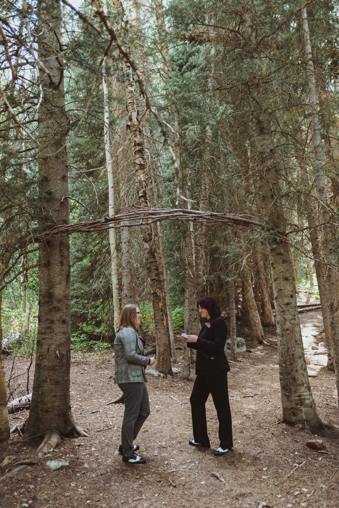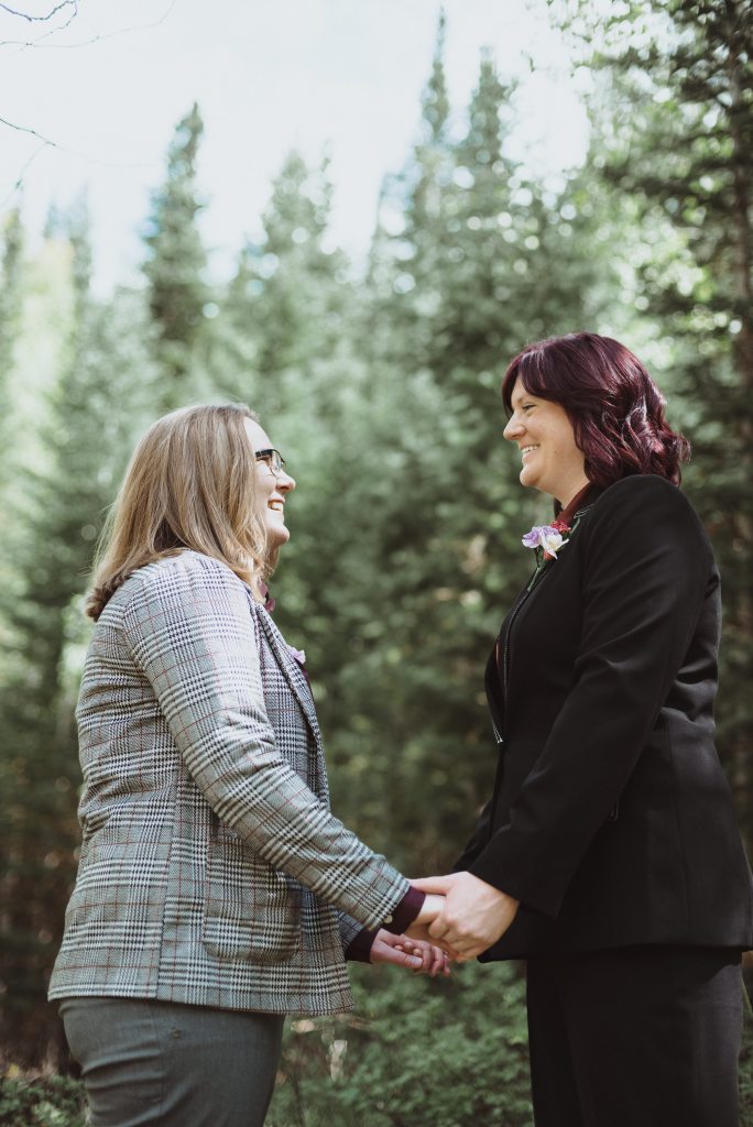These two and their wedding day was absolutely perfect! Carolyn and Kirsty said their vows to each other alone under an arch that we literally found in the middle of the forest. It was such a special moment between the two of them, and I loved that they took time with the people that that day is all about- each other. They then got married in the most beautiful scenery, surrounded by trees and blue skies. And the most exciting part of the whole day? We had a family of moose crash the wedding! A mom, dad, and baby moose hung out outside the cabin for the whole afternoon, it was amazing!